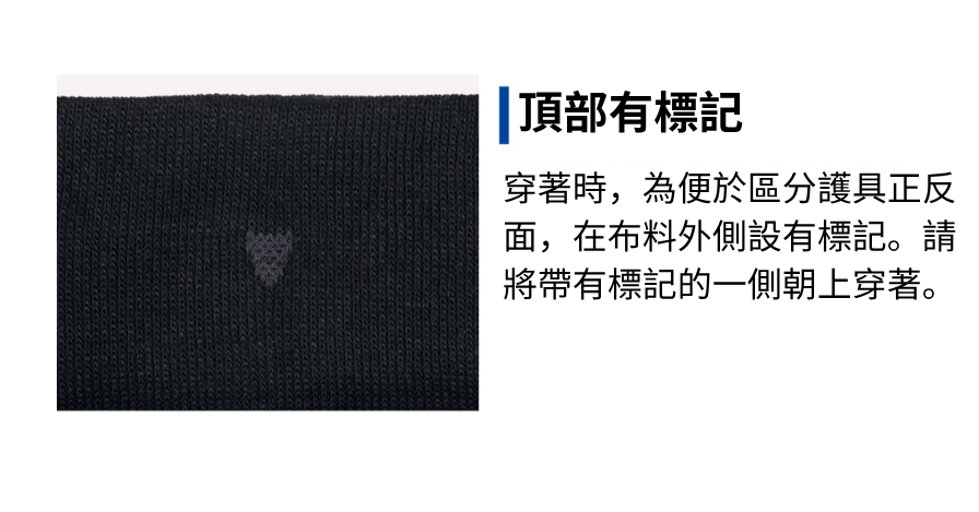 · 布料外側有標記,穿著時可以辨別主體的頂部和底部。 左手和右手均可使用。
