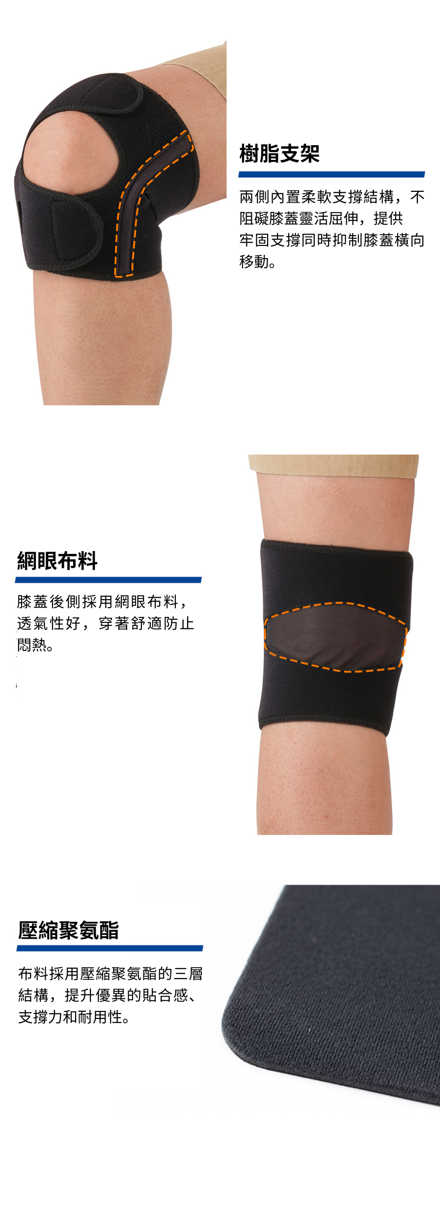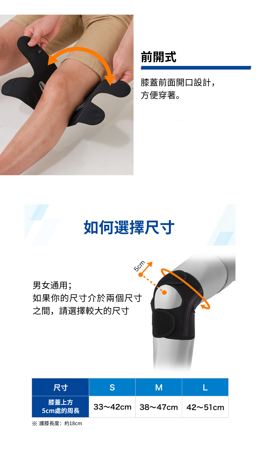 · 左右膝都可使用,前開式設計,方便穿著。